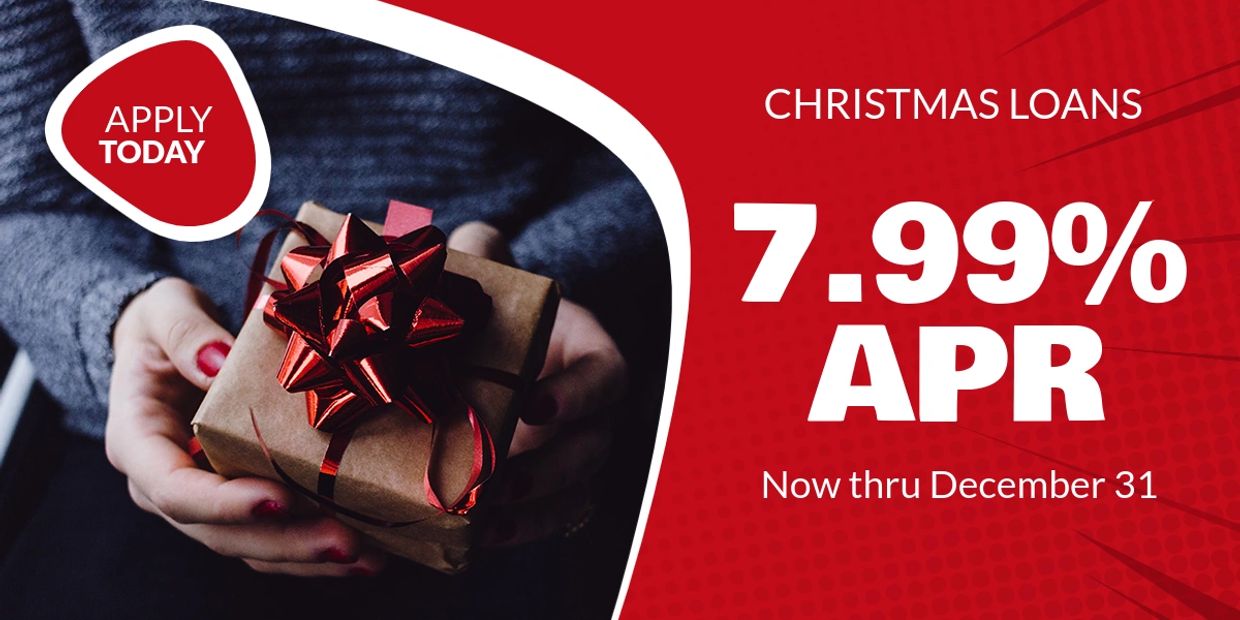 We can help you cover holiday expenses without relying on high interest rate credit cards. Borrow up to $2,500. Loan term is 12-months. Automatic loan payment is required. Minimum credit score is 650. The monthly payment on a $2,500 loan at 7.99% Annual Percentage Rate (APR) is $217.46. A $150 Processing Fee will be applied to all approved loans. Offer expires December 31, 2025. It's quick and easy to apply today. Click the link below.